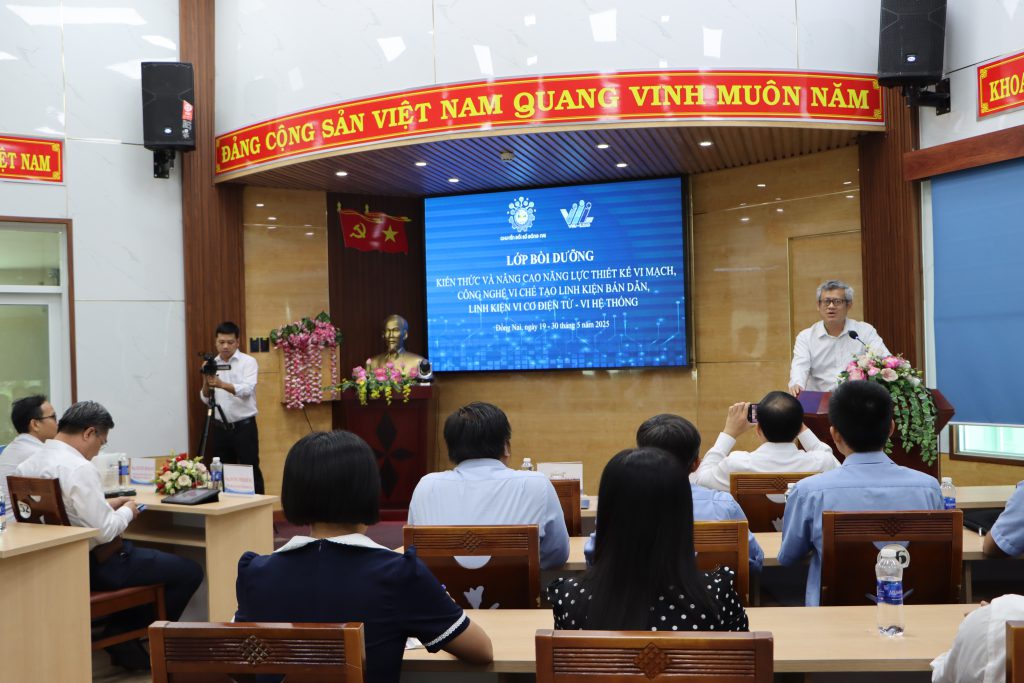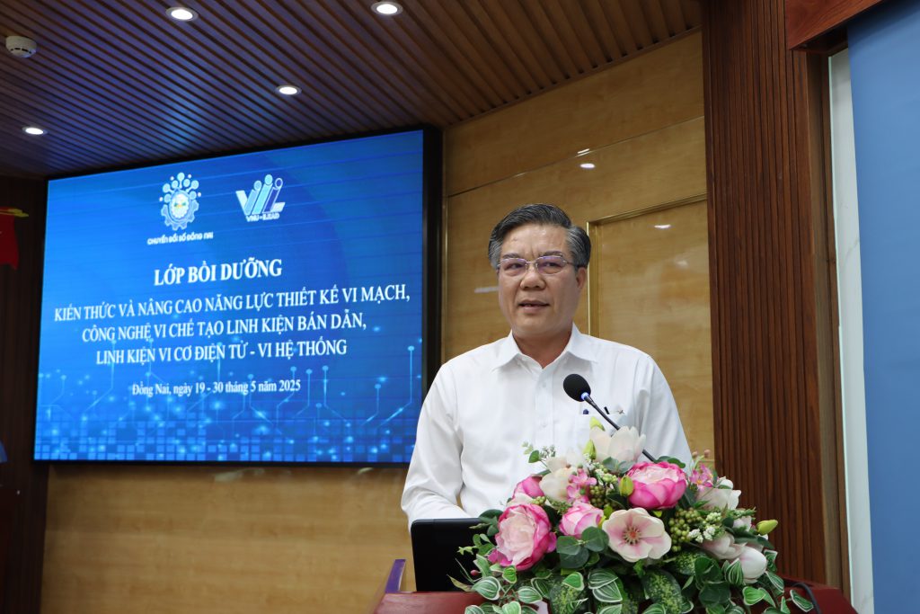 Chiều ngày 19/5, Sở Khoa học và Công nghệ tỉnh Đồng Nai đã tổ chức khai giảng lớp bồi dưỡng kiến thức và nâng cao năng lực thiết kế vi mạch, công nghệ vi chế tạo linh kiện bán dẫn, linh kiện vi cơ điện tử – vi hệ thống. Tham dự lễ có Phó Chủ tịch UBND tỉnh Dương Minh Dũng, TS. Lê Quốc Bảo – Phó Viện trưởng Viện năng lực lãnh đạo, Đại học quốc gia TP.HCM, Giám đốc Sở Khoa học và Công nghệ Tạ Quang Trường.