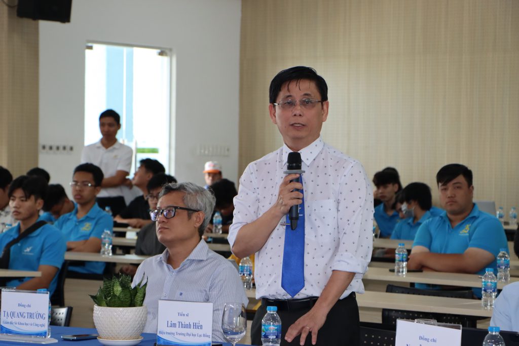 TS Lâm Thành Hiển, Hiệu trưởng Trường Đại học Lạc Hồng phát biểu ý kiến tại buổi lễ