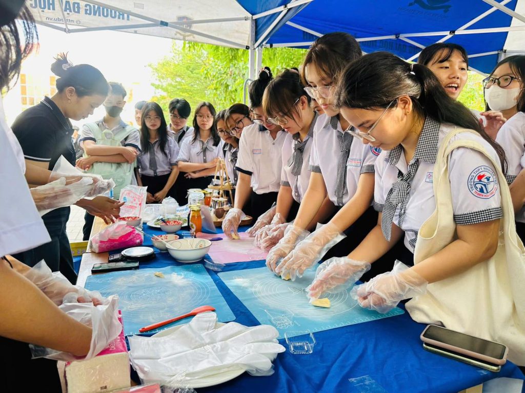 Sau buổi lễ, các em học sinh được định hướng nghề nghiệp STEM và chia sẻ tâm lý, chuẩn bị hành trang cho con đường học vấn và sự nghiệp từ các chuyên gia. Ngoài ra, các em còn được tham gia trải nghiệm các mô hình khoa học sáng tạo, thực hành làm bánh, điều chế nước hoa, xà phòng,…và hoạt động giao lưu, rèn luyện kỹ năng làm việc nhóm.