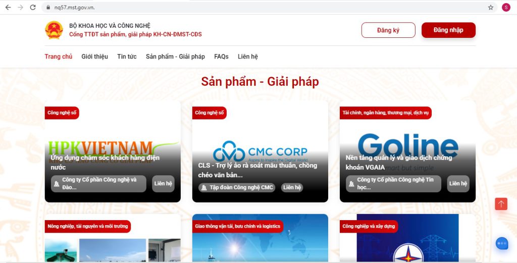 Cổng thông tin tiếp nhận và công bố các sản phẩm, giải pháp khoa học, công nghệ, đổi mới sáng tạo và chuyển đổi số là kênh chính thức để tiếp nhận đề xuất các “Sản phẩm – Giải pháp” mới về công nghệ, chuyển đổi số đã được triển khai, ứng dụng thành công trong thực tế tại Việt Nam mang lại hiệu quả thiết thực cho các cơ quan, doanh nghiệp.