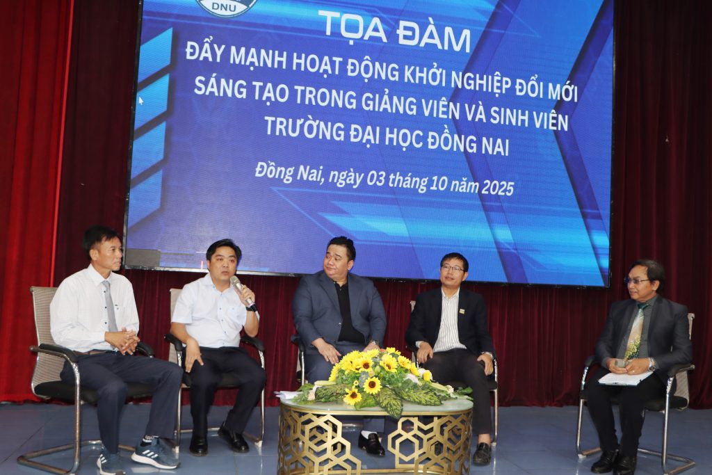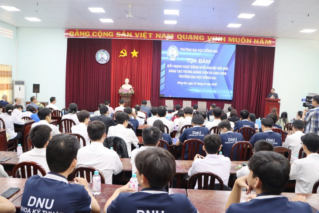 Sáng ngày 3/10/2025, Trường Đại học Đồng Nai đã tổ chức buổi tọa đàm “Đẩy mạnh hoạt động Khởi nghiệp đổi mới sáng tạo trong giảng viên và sinh viên trường Đại học Đồng Nai”. Tham dự chương trình có các đại biểu đại diện cho các đơn vị, doanh nghiệp và sinh viên nhà trường.