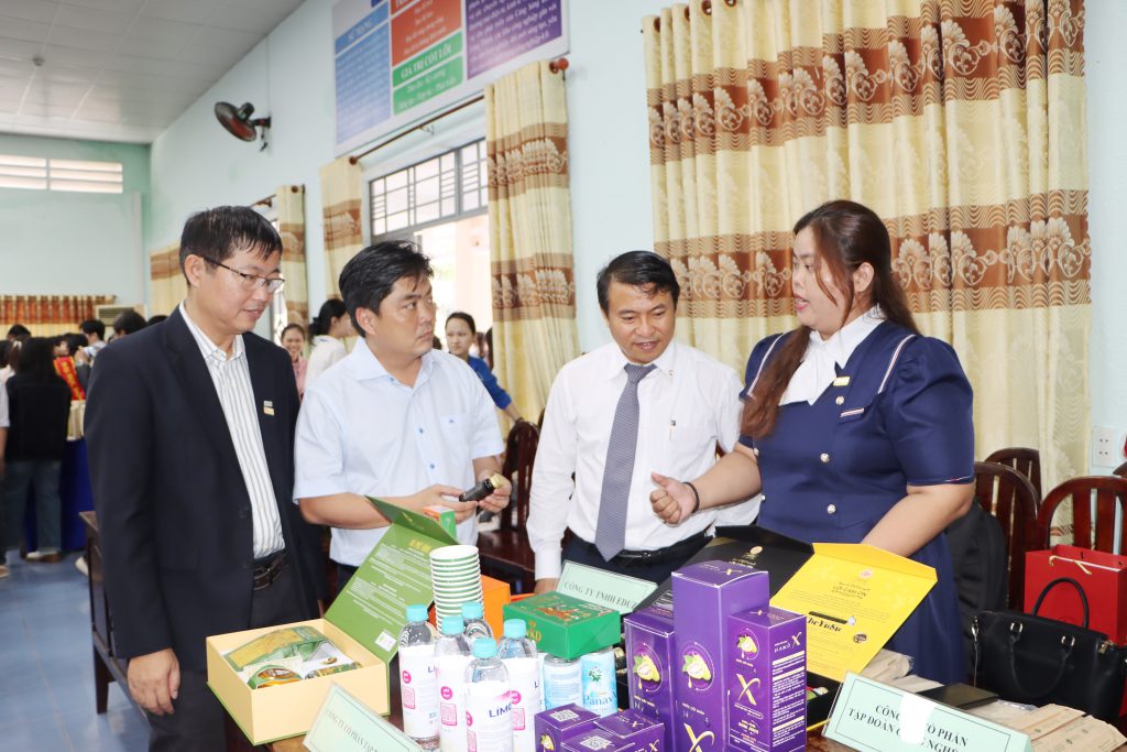 Các đại biểu tham quan gian hàng giới thiệu sản phẩm khởi nghiệp bên lề buổi tọa đàm
